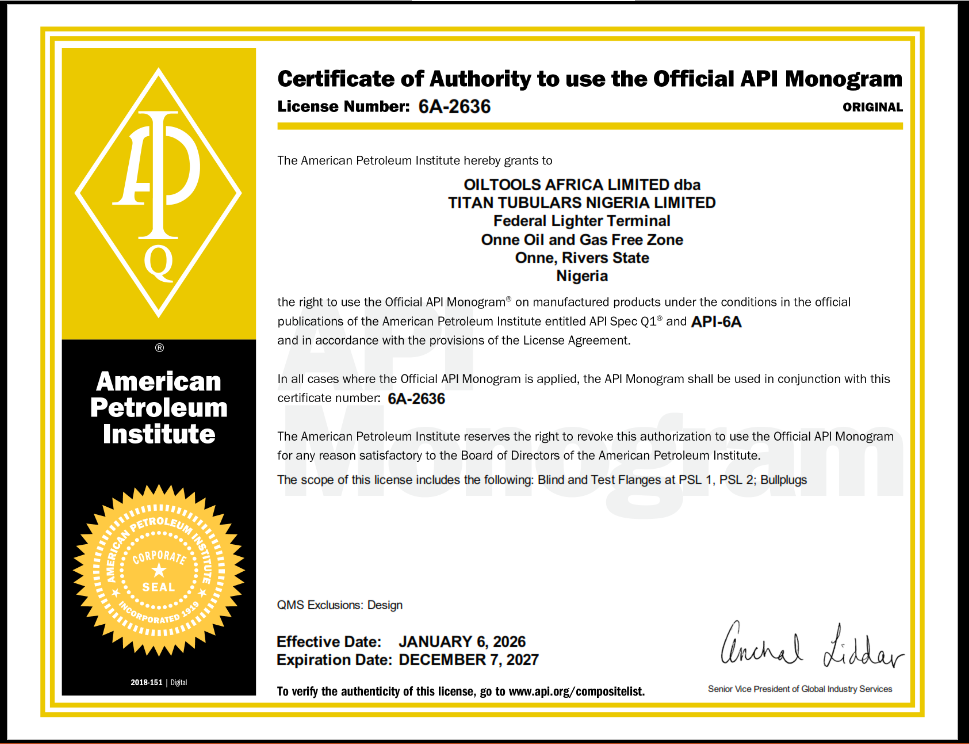 FLANGE (Spec 6A) | All Sizes except Type 6B [Design excluded] |
